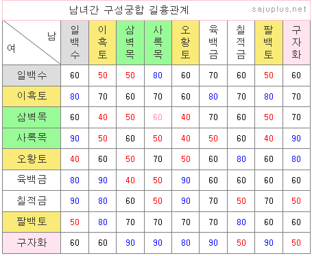 사주를 따지기 힘든 일반인들이 가장 알기 쉽고 명쾌한 답안을 찾을 수 있어, 누구에게나 쉽게 이해할 수 있는 부분이기도 합니다. [잘 맞는다] [안 맞는다] 라는 문제를 떠나 그래도 모든 사람들이 관심을 많이 가지는 궁합법의 하나일 수 있습니다.