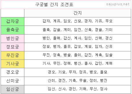 태어난 해의 간지에 따라 궁을 분류한 것입니다.